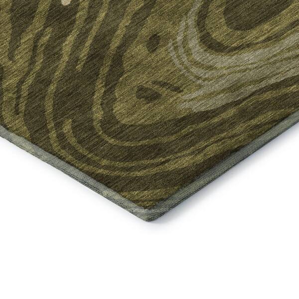 Mayfield Premium Machine Washable Abstract AMF1051 Olive 3 ft. x 5 ft. Area Rug