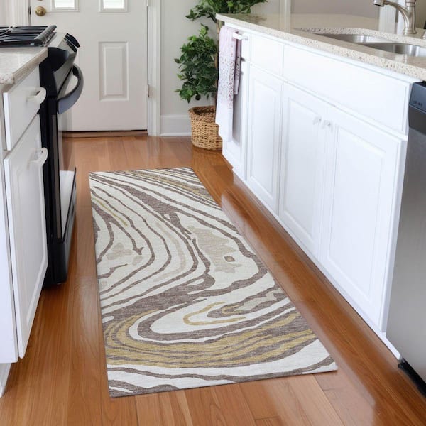 Mayfield Premium Machine Washable Abstract AMF1051 Taupe 2 ft. 3 in. x 7 ft. 6 in. Runner Rug