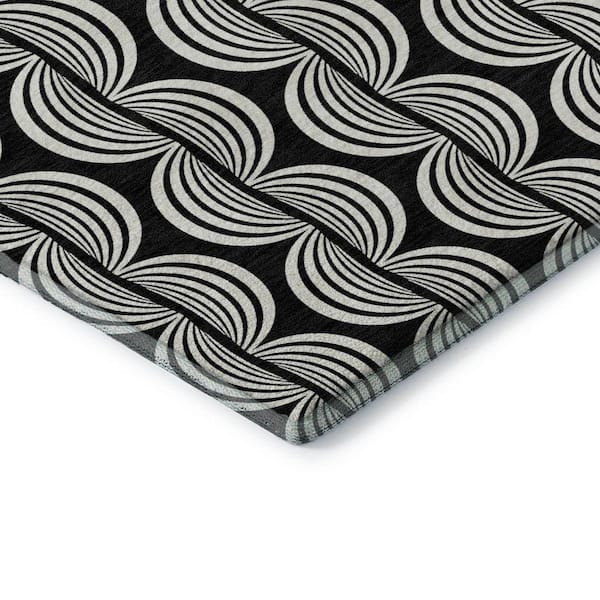 Mayfield Premium Machine Washable Abstract AMF1055 Black 9 ft. x 12 ft. Area Rug