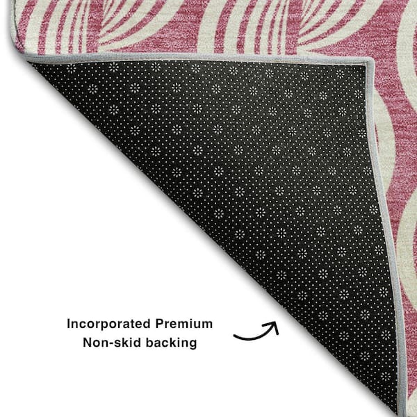 Mayfield Premium Machine Washable Abstract AMF1055 Blush 8 ft. x 8 ft. Round Rug