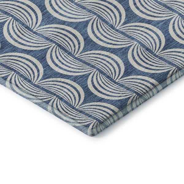 Mayfield Premium Machine Washable Abstract AMF1055 Denim 2 ft. 3 in. x 7 ft. 6 in. Runner Rug