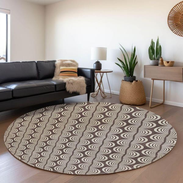 Mayfield Premium Machine Washable Abstract AMF1055 Fudge 8 ft. x 8 ft. Round Rug