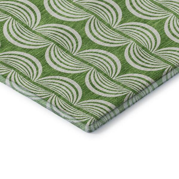 Mayfield Premium Machine Washable Abstract AMF1055 Green 8 ft. x 8 ft. Round Rug