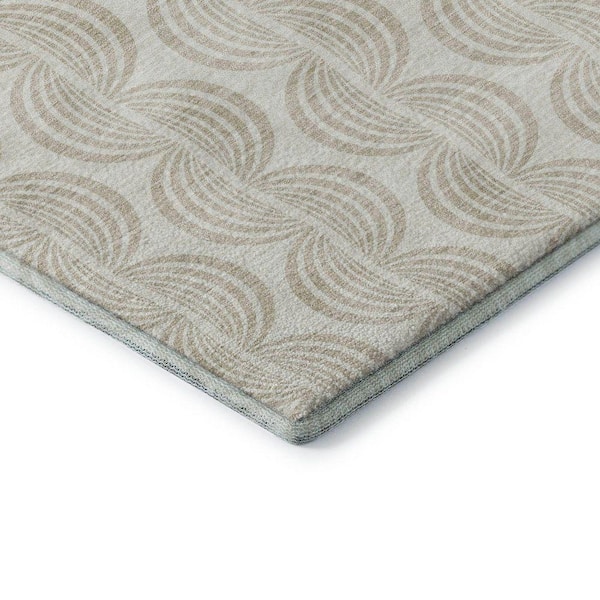 Mayfield Premium Machine Washable Abstract AMF1055 Ivory 8 ft. x 8 ft. Round Rug