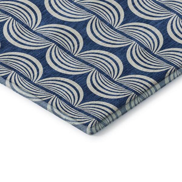 Mayfield Premium Machine Washable Abstract AMF1055 Navy 8 ft. x 8 ft. Round Rug