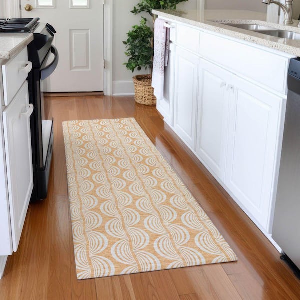 Mayfield Premium Machine Washable Abstract AMF1056 Peach 2 ft. 3 in. x 7 ft. 6 in. Runner Rug