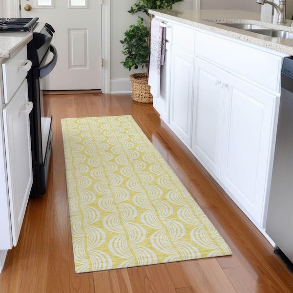 Mayfield Premium Machine Washable Abstract AMF1056 Yellow 2 ft. 3 in. x 7 ft. 6 in. Runner Rug