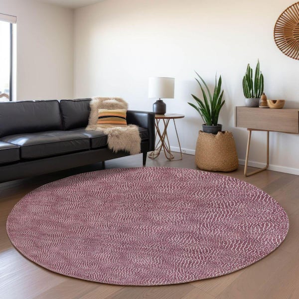 Mayfield Premium Machine Washable Abstract AMF1057 Eggplant 8 ft. x 8 ft. Round Rug