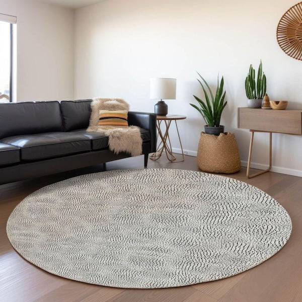 Mayfield Premium Machine Washable Abstract AMF1058 White 8 ft. x 8 ft. Round Rug