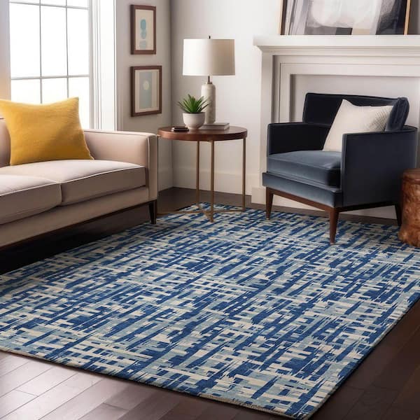 Mayfield Premium Machine Washable Abstract AMF1059 Blue 3 ft. x 5 ft. Area Rug