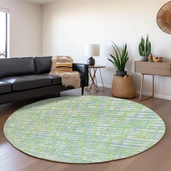 Mayfield Premium Machine Washable Abstract AMF1060 Mint 8 ft. x 8 ft. Round Rug