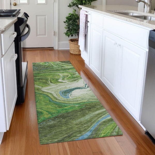 Mayfield Premium Machine Washable Abstract AMF1061 Green 2 ft. 3 in. x 7 ft. 6 in. Runner Rug
