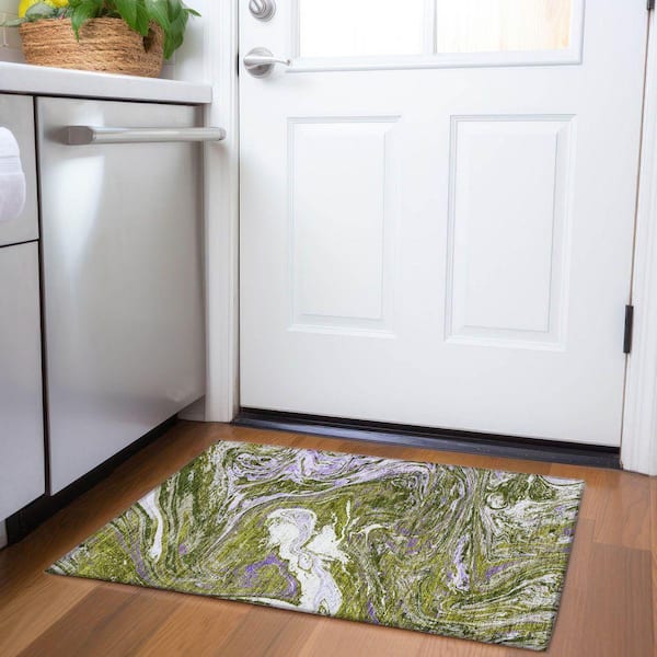 Mayfield Premium Machine Washable Abstract AMF1061 Olive 2 ft. x 3 ft. Area Rug
