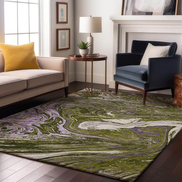 Mayfield Premium Machine Washable Abstract AMF1061 Olive 9 ft. x 12 ft. Area Rug