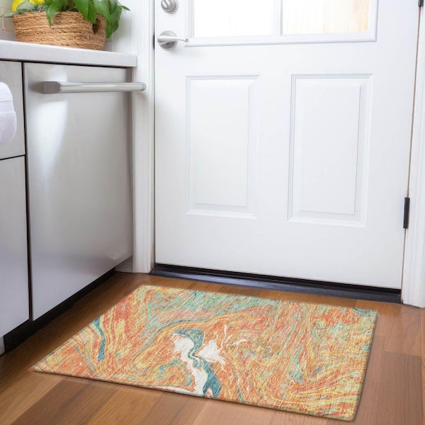 Mayfield Premium Machine Washable Abstract AMF1061 Orange 2 ft. x 3 ft. Area Rug