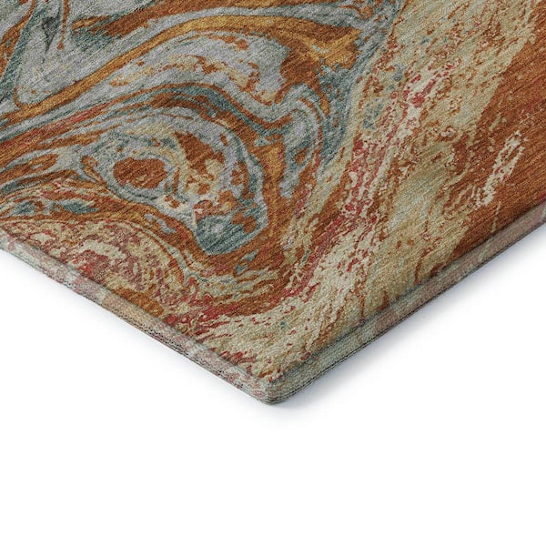Mayfield Premium Machine Washable Abstract AMF1061 Paprika 3 ft. x 5 ft. Area Rug