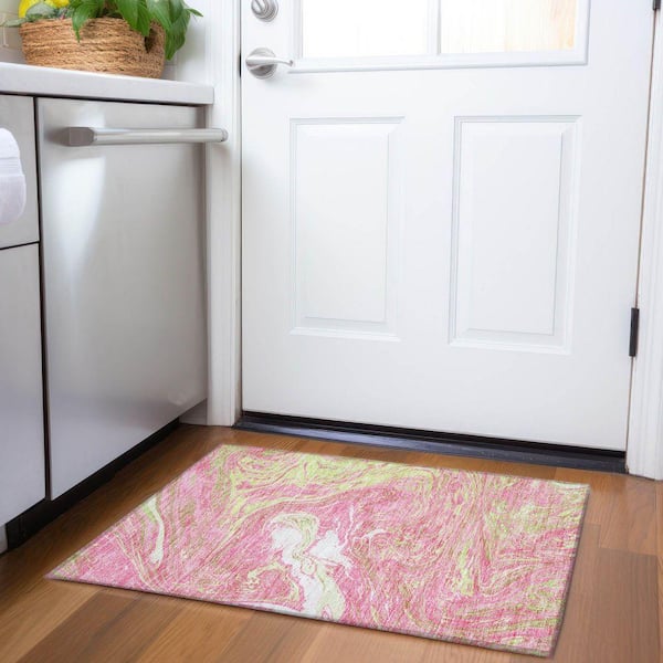 Mayfield Premium Machine Washable Abstract AMF1061 Pink 2 ft. x 3 ft. Area Rug