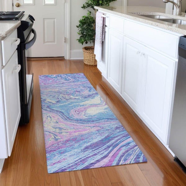 Mayfield Premium Machine Washable Abstract AMF1061 Sky 2 ft. 3 in. x 7 ft. 6 in. Runner Rug