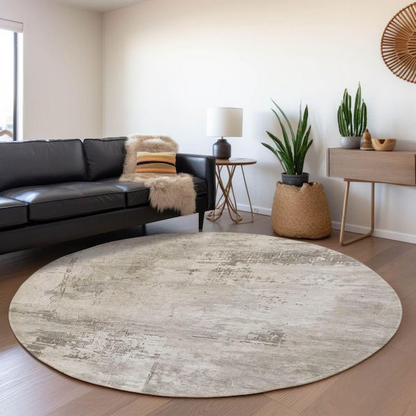 Mayfield Premium Machine Washable Abstract AMF1062 Beige 8 ft. x 8 ft. Round Rug