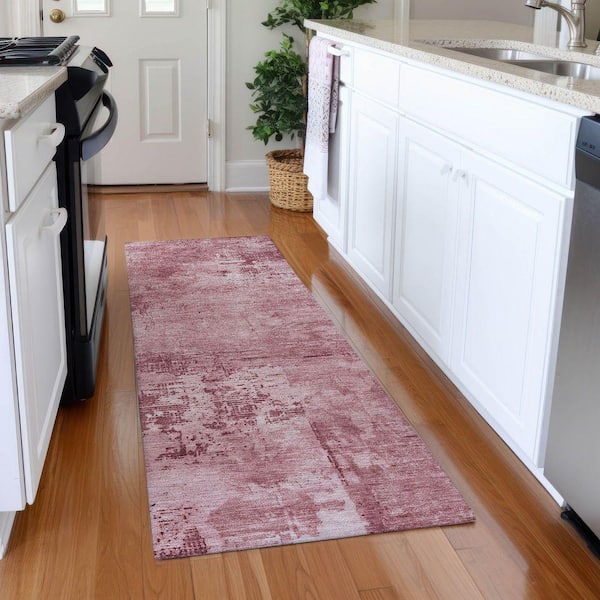 Mayfield Premium Machine Washable Abstract AMF1062 Blush 2 ft. 3 in. x 7 ft. 6 in. Runner Rug