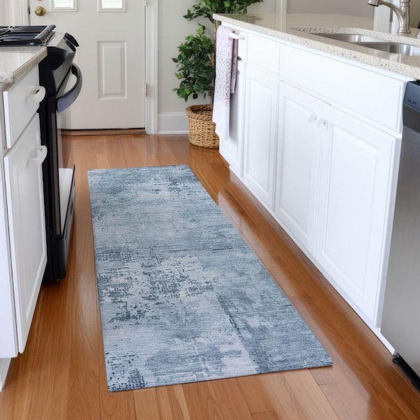 Mayfield Premium Machine Washable Abstract AMF1062 Denim 2 ft. 3 in. x 7 ft. 6 in. Runner Rug