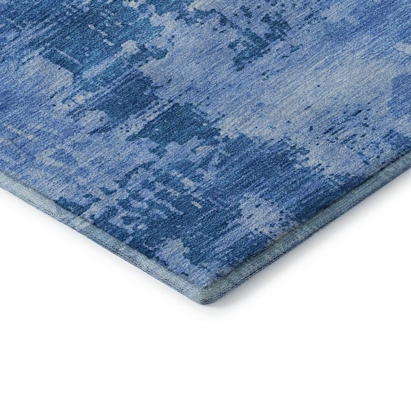 Mayfield Premium Machine Washable Abstract AMF1062 Navy 8 ft. x 8 ft. Round Rug