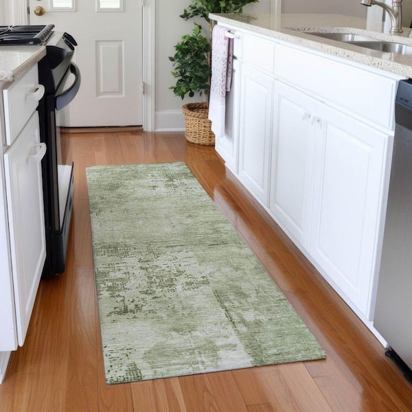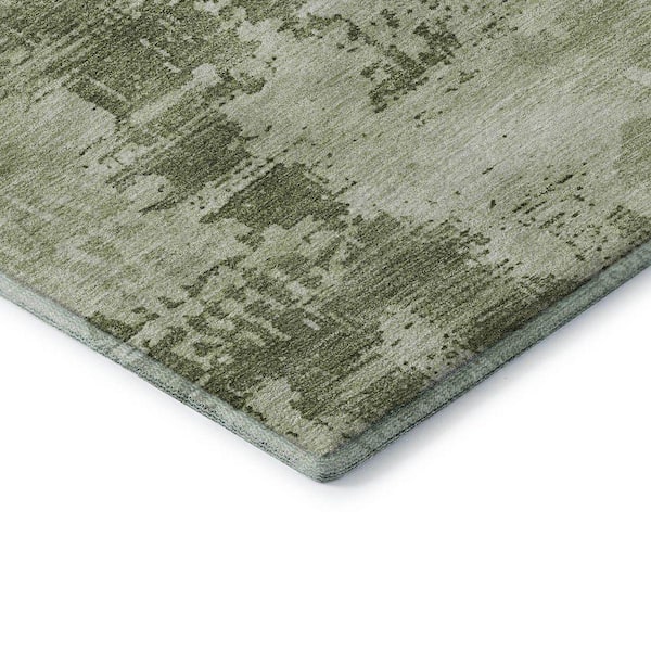 Mayfield Premium Machine Washable Abstract AMF1062 Olive 2 ft. 3 in. x 7 ft. 6 in. Runner Rug