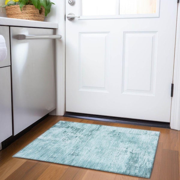 Mayfield Premium Machine Washable Abstract AMF1062 Seafoam 2 ft. x 3 ft. Area Rug