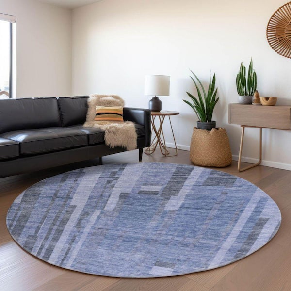 Mayfield Premium Machine Washable Abstract AMF1063 Denim 8 ft. x 8 ft. Round Rug