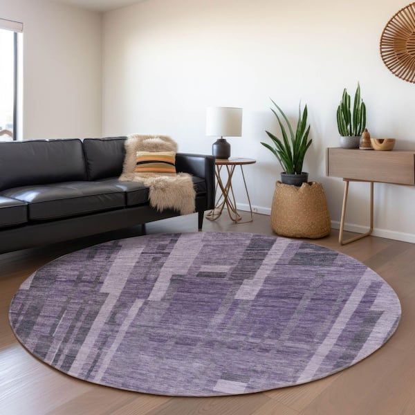 Mayfield Premium Machine Washable Abstract AMF1063 Purple 8 ft. x 8 ft. Round Rug