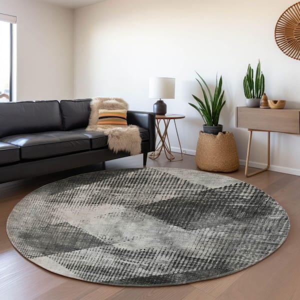Mayfield Premium Machine Washable Abstract AMF1065 Gray 8 ft. x 8 ft. Round Rug