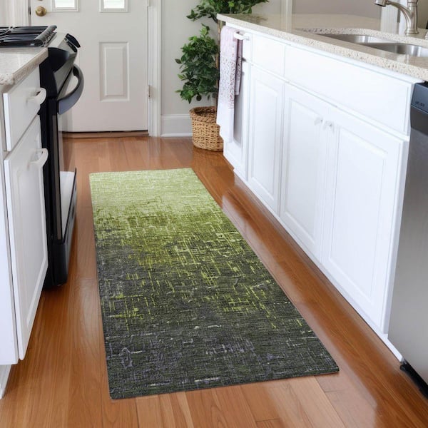 Mayfield Premium Machine Washable Abstract AMF1066 Lime 2 ft. 3 in. x 7 ft. 6 in. Runner Rug