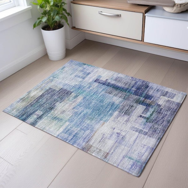 Mayfield Premium Machine Washable Abstract AMF1067 Blue 2 ft. x 3 ft. Area Rug