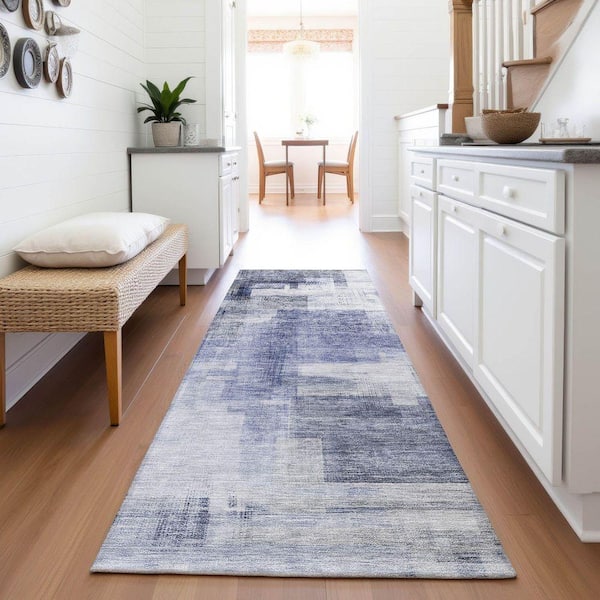 Mayfield Premium Machine Washable Abstract AMF1067 Denim 2 ft. 3 in. x 7 ft. 6 in. Runner Rug