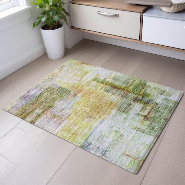 Mayfield Premium Machine Washable Abstract AMF1067 Green 2 ft. x 3 ft. Area Rug
