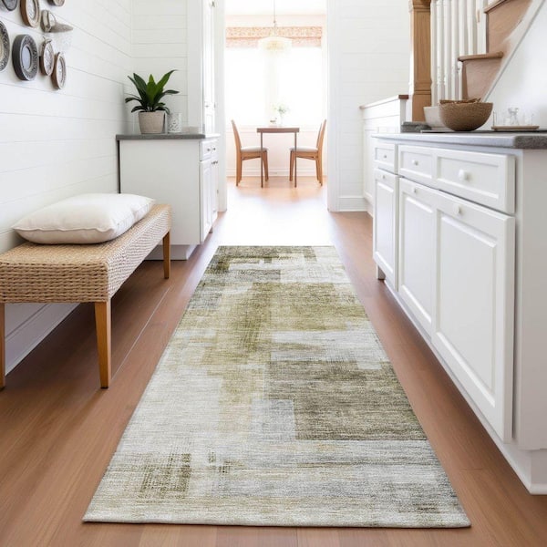 Mayfield Premium Machine Washable Abstract AMF1067 Taupe 2 ft. 3 in. x 7 ft. 6 in. Runner Rug