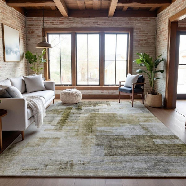 Mayfield Premium Machine Washable Abstract AMF1067 Taupe 5 ft. x 7 ft. 6 in. Area Rug