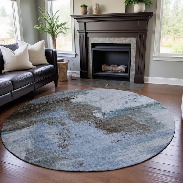 Mayfield Premium Machine Washable Abstract AMF1068 Blue 8 ft. x 8 ft. Round Rug