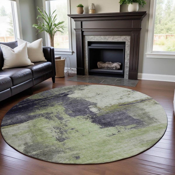 Mayfield Premium Machine Washable Abstract AMF1068 Fern 8 ft. x 8 ft. Round Rug