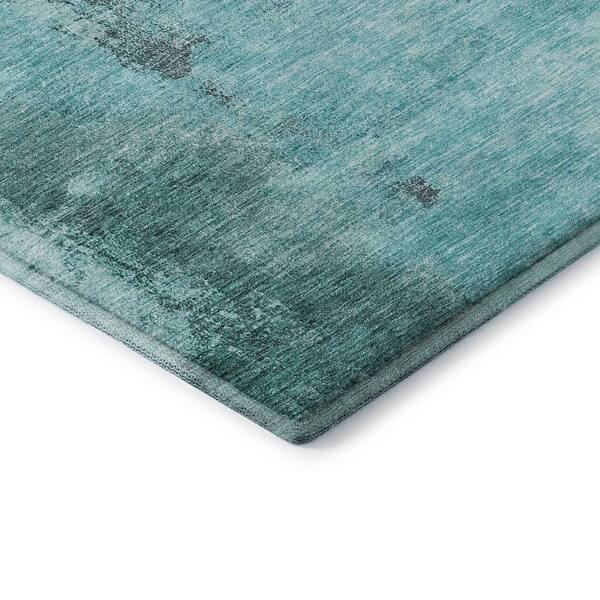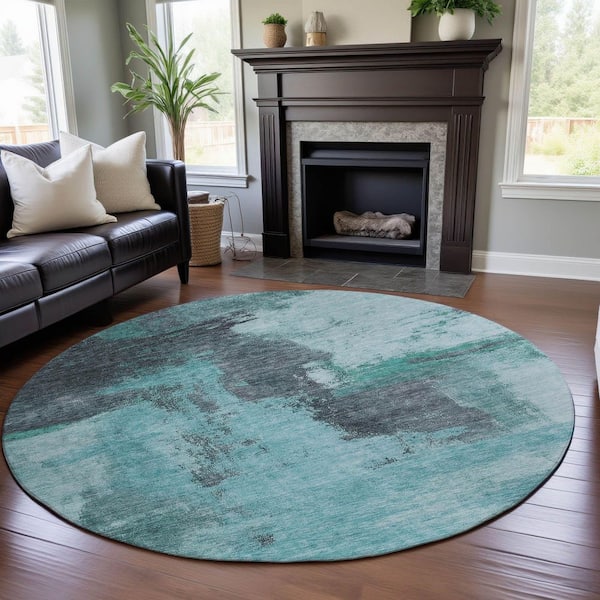Mayfield Premium Machine Washable Abstract AMF1068 Teal 8 ft. x 8 ft. Round Rug