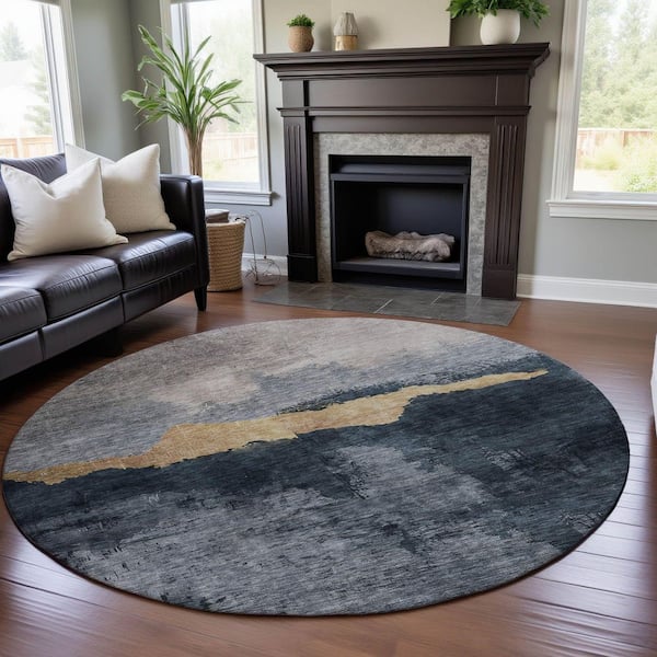 Mayfield Premium Machine Washable Abstract AMF1069 Blue 8 ft. x 8 ft. Round Rug