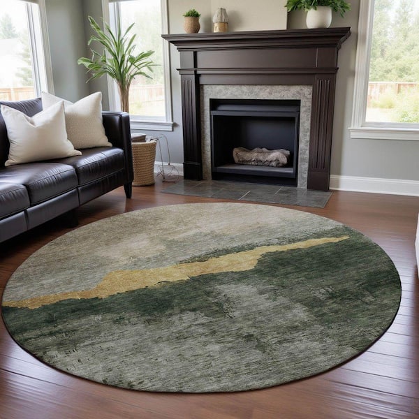 Mayfield Premium Machine Washable Abstract AMF1069 Fern 8 ft. x 8 ft. Round Rug
