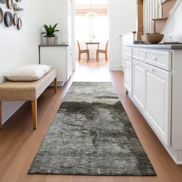Mayfield Premium Machine Washable Abstract AMF1069 Taupe 2 ft. 3 in. x 7 ft. 6 in. Runner Rug