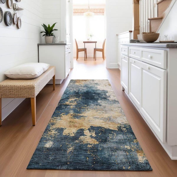Mayfield Premium Machine Washable Abstract AMF1072 Blue 2 ft. 3 in. x 7 ft. 6 in. Runner Rug