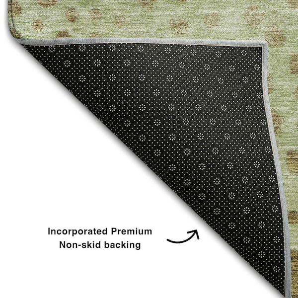 Mayfield Premium Machine Washable Abstract AMF1074 Aloe 8 ft. x 8 ft. Round Rug
