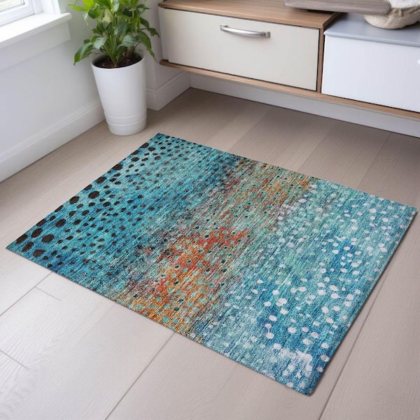 Mayfield Premium Machine Washable Abstract AMF1074 Blue 2 ft. x 3 ft. Area Rug