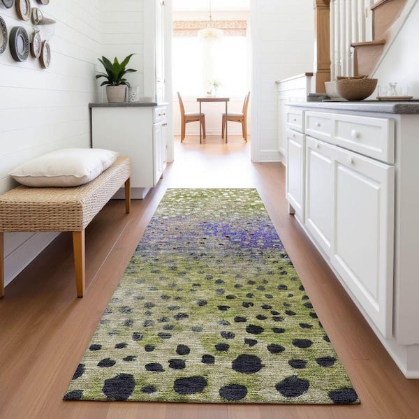 Mayfield Premium Machine Washable Abstract AMF1074 Green 2 ft. 3 in. x 7 ft. 6 in. Runner Rug