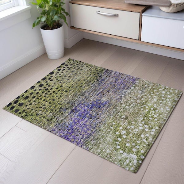 Mayfield Premium Machine Washable Abstract AMF1074 Green 2 ft. x 3 ft. Area Rug