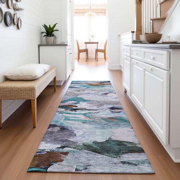 Mayfield Premium Machine Washable Abstract AMF1075 Blue 2 ft. 3 in. x 7 ft. 6 in. Runner Rug