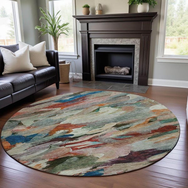 Mayfield Premium Machine Washable Abstract AMF1075 Green 8 ft. x 8 ft. Round Rug